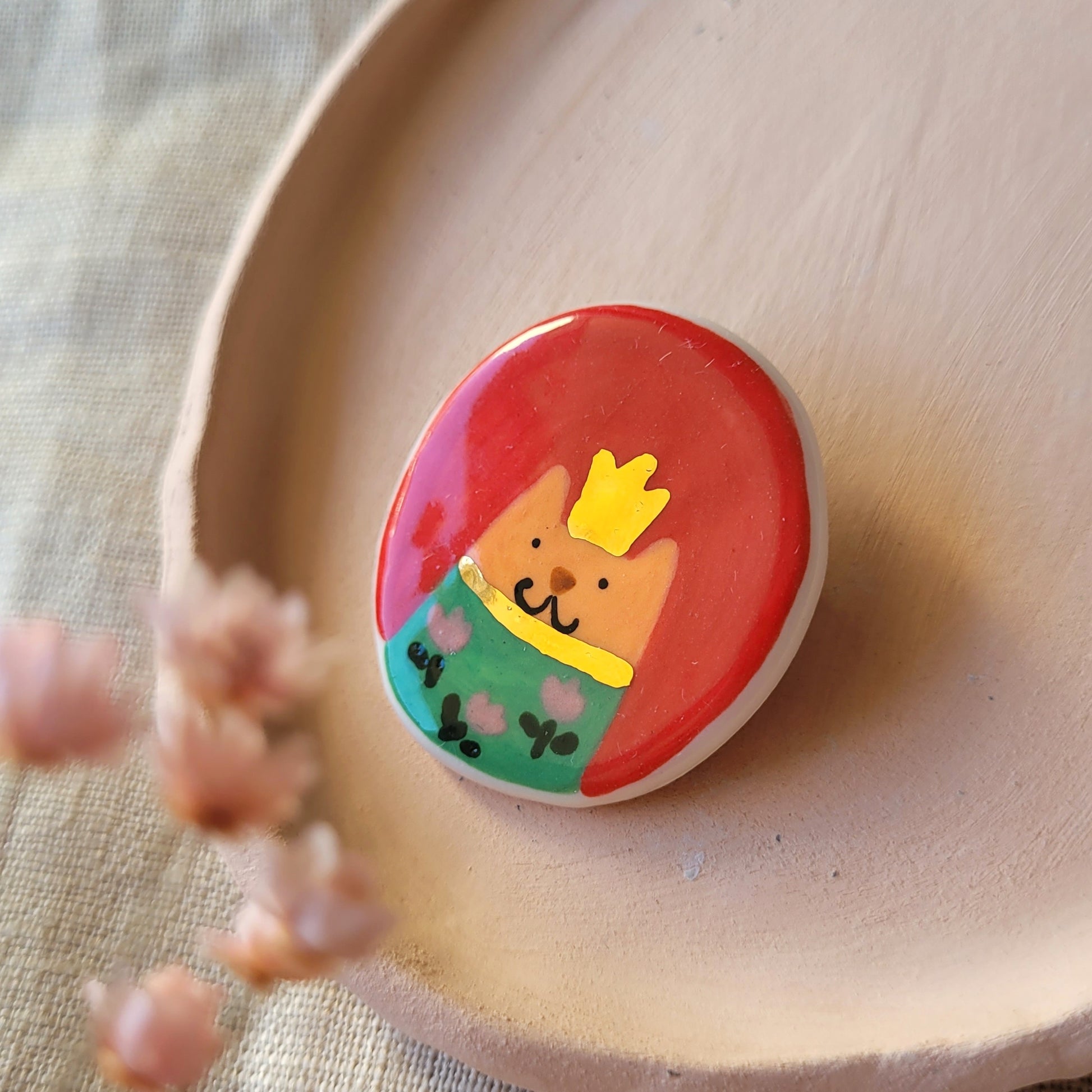 Handmade and hand painted porcelain brooch, decorated with genuine liquid gold.