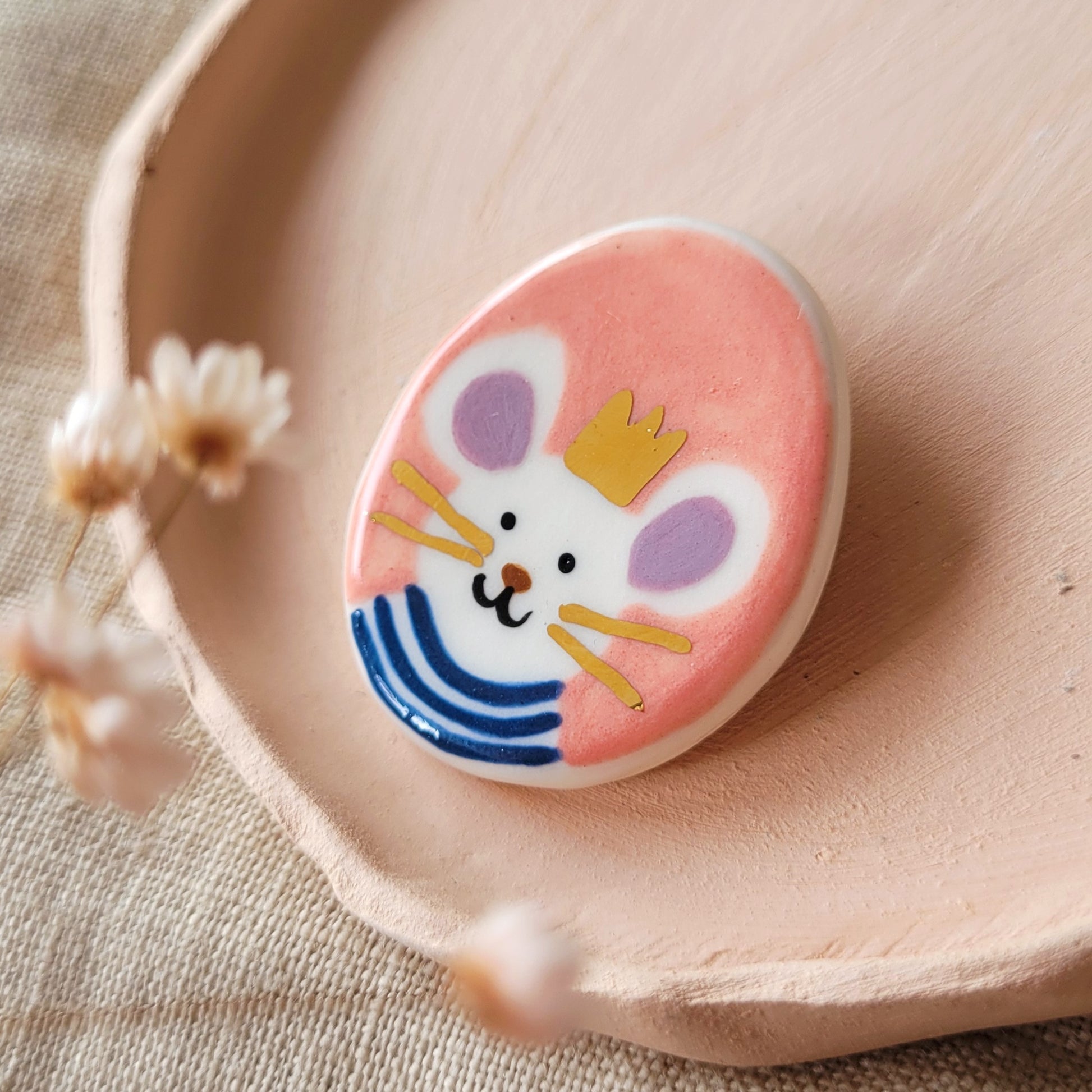 Handmade and hand painted porcelain brooch, decorated with genuine liquid gold.